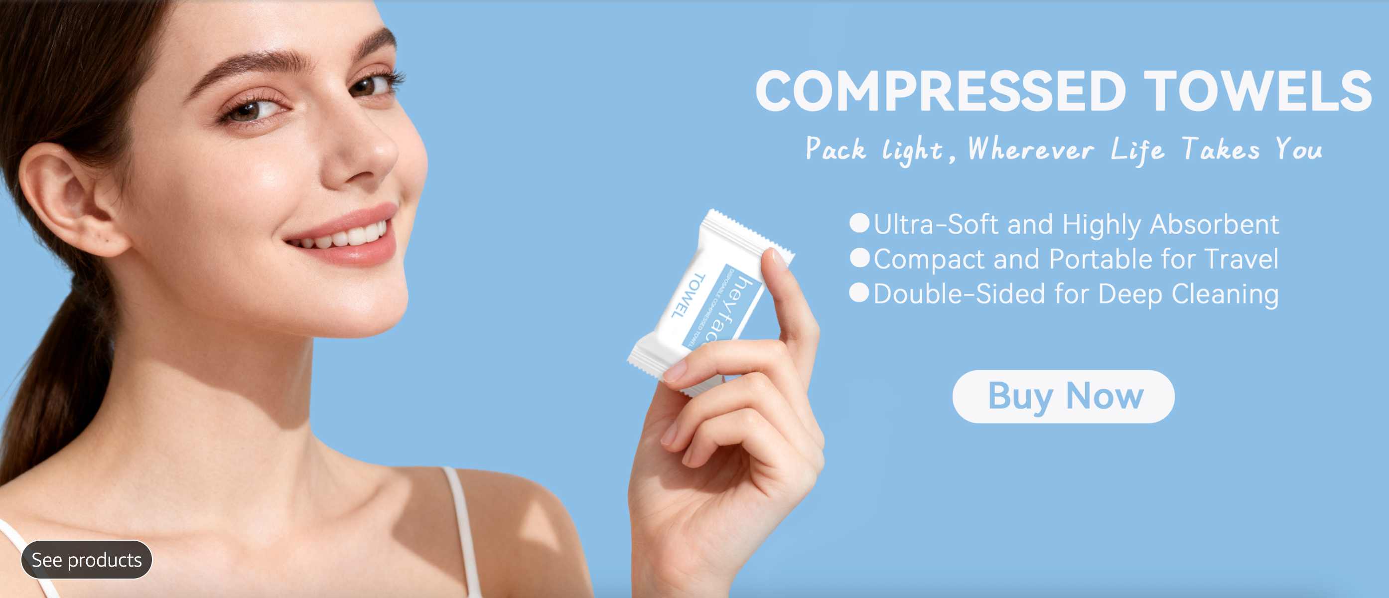 Heyface Compressed Towels. The essential, space-saving clean for your carry-on.